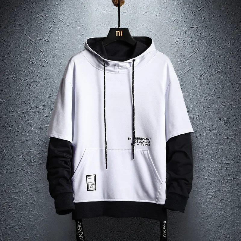 New Hoodie Sweatshirt Mens Hip Hop Pullover Hoodies Streetwear Casual Fashion Clothes Colorblock Hoodie Cotton