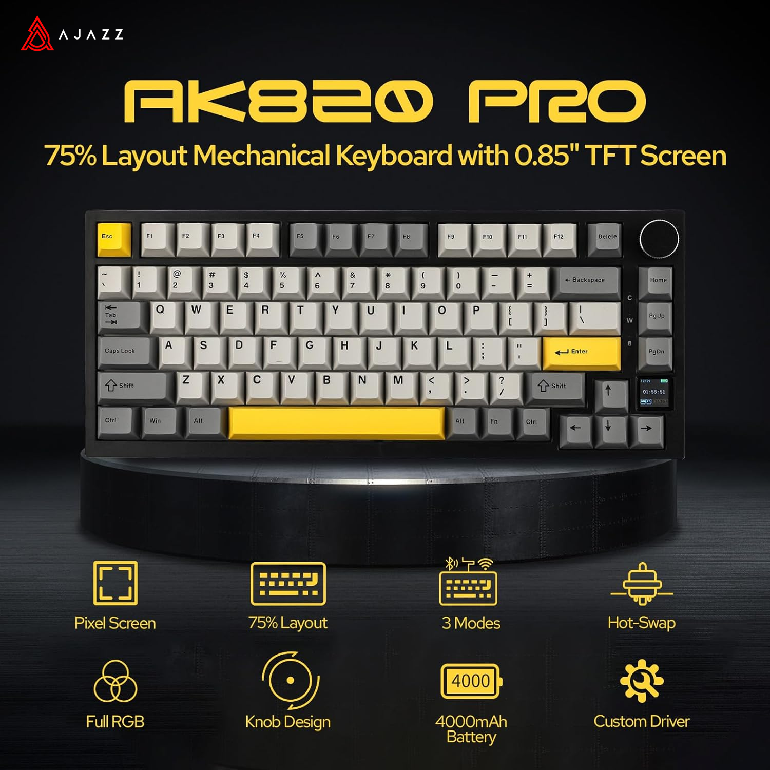 Ajazz AK820/AK820Pro Gaming Mechanical Keyboard Bluetooth 5.1/Wireless/C-Wired Customized Keyboard with Knob Hot Swapping Gasket