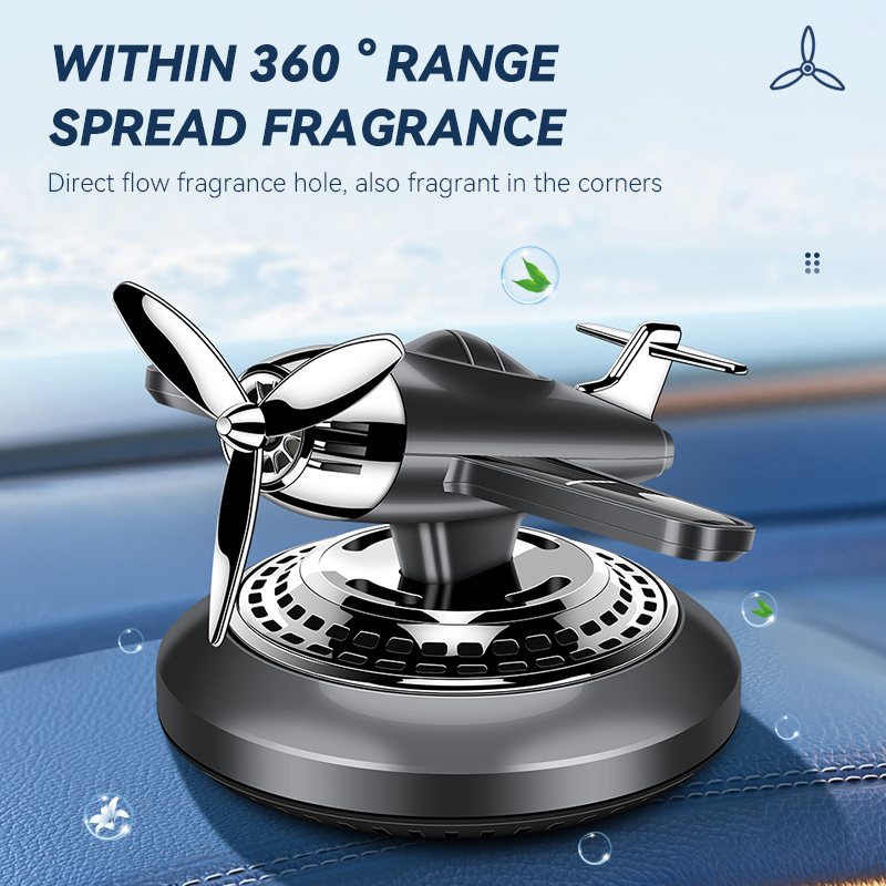 Solar energy powered rotating propeller fighter car air freshener scent perfume airplane fragrance diffuser dashboard aroma men