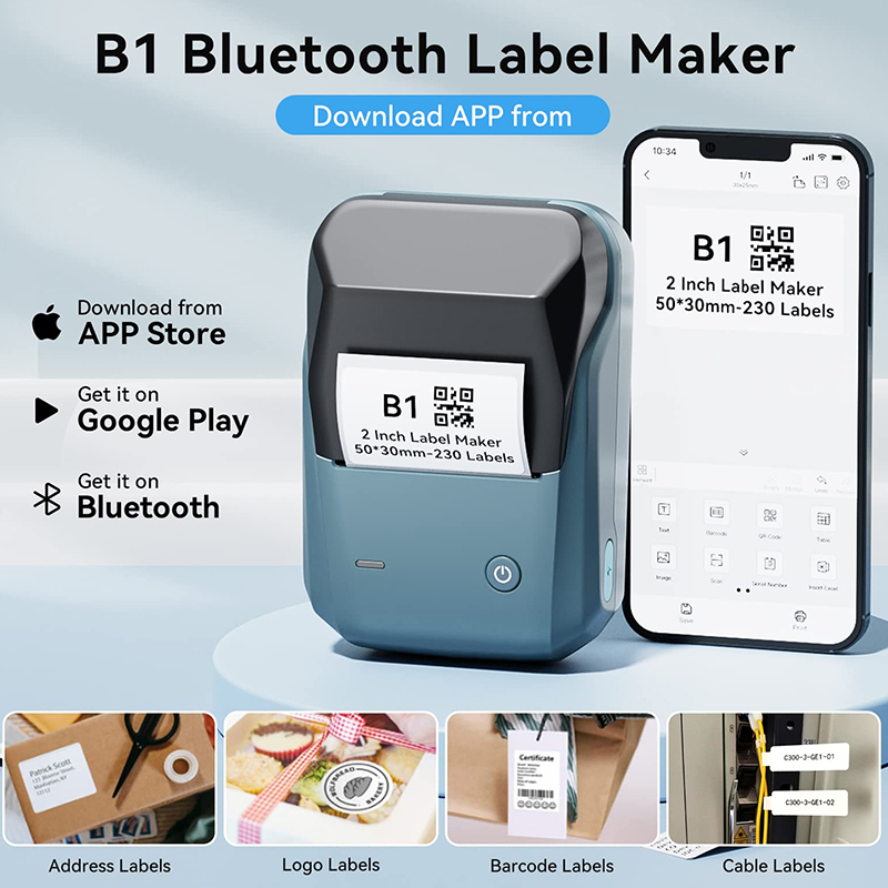 Mini Label Thermal Printer Niimbot B1 Portable Self-Adhesive Printer For Stickers Round Labels Rolls UV Tag Bluetooth Printer