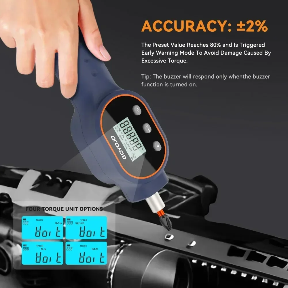 1/4" Digital Torque Screwdriver Drive Screwdriver 7.08-70.8 in-lbs Torque Wrench Driver 10pcs Magnetic Drill Bit Repair Tool Kit