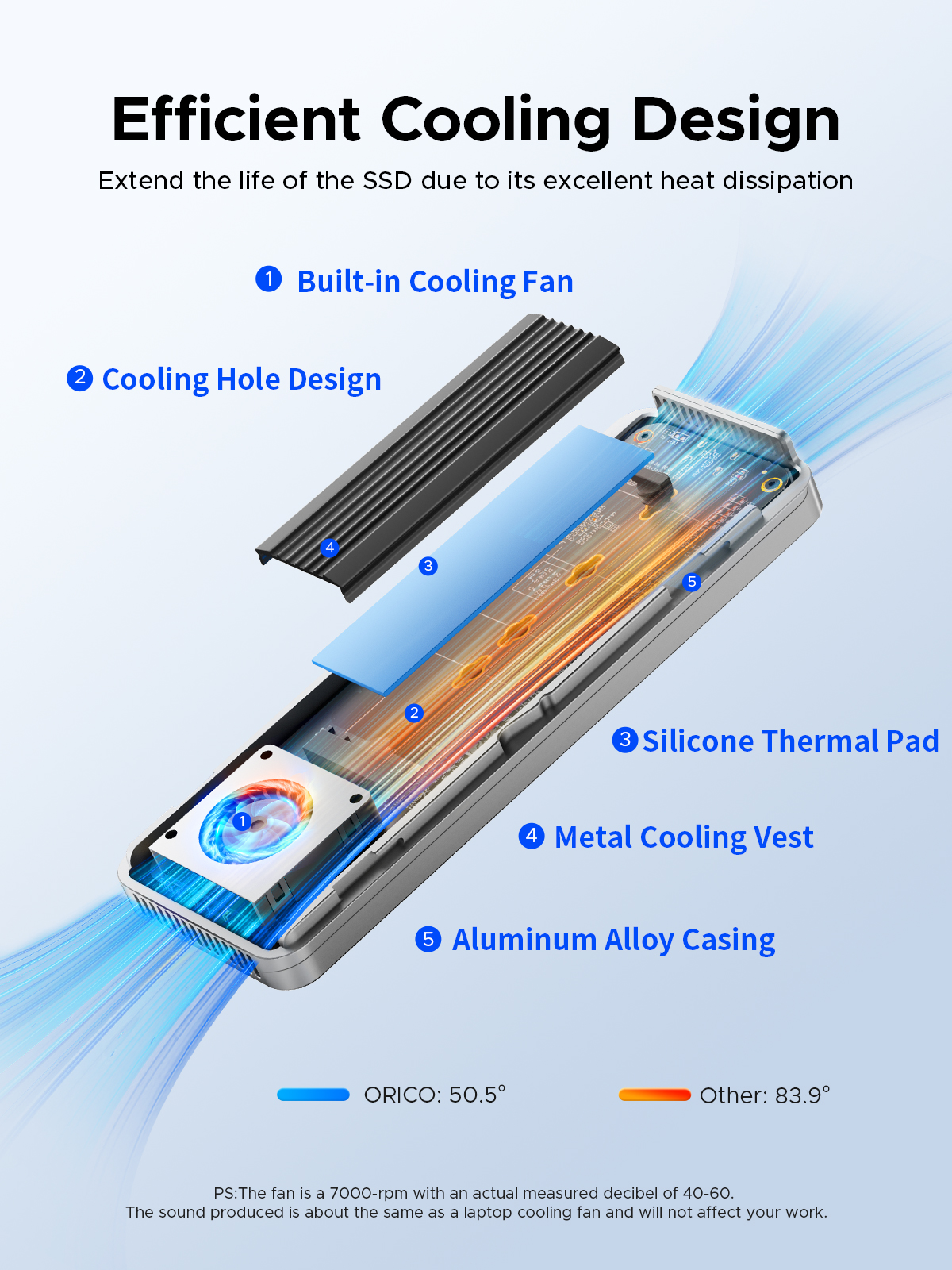 ORICO 40Gbps USB4 M.2 SSD Enclosure 8TB with with Cooling Fan PCIe4.0 NVME Enclosure Aluminum Compatible Thunderbolt 3/4 for Mac