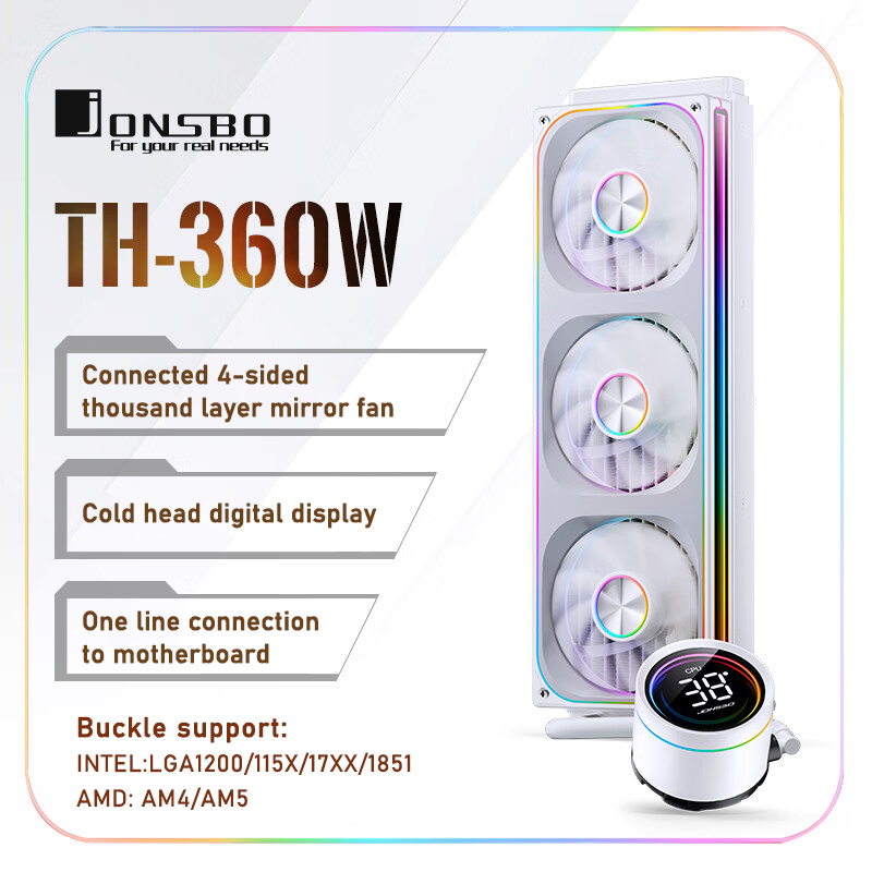JONSBO TH-360 White Water Cooler 120mm ARGB Fan TH-240 AIO CPU Liquid Cooling Integrated Water-cooled LGA1700 115X 1851 1200 AM5