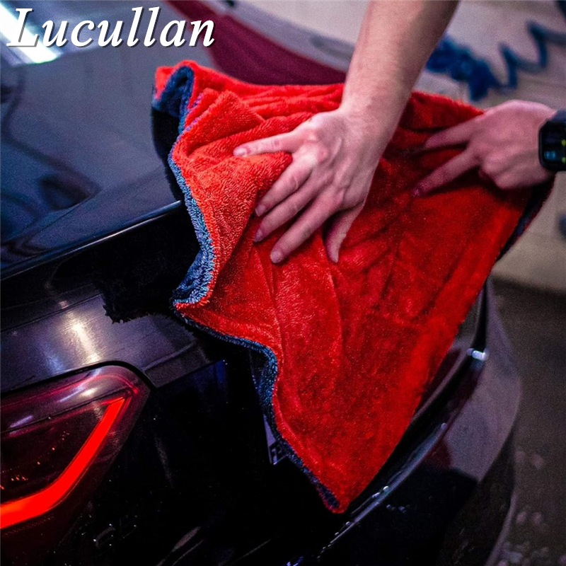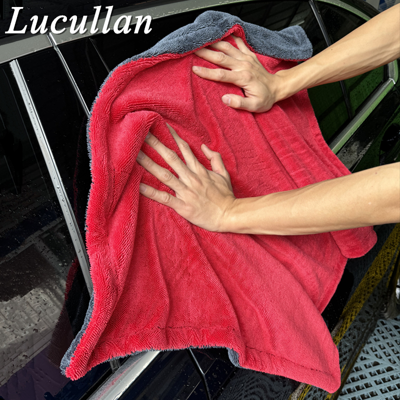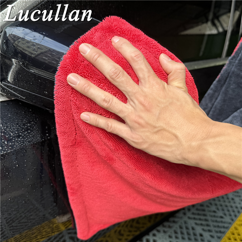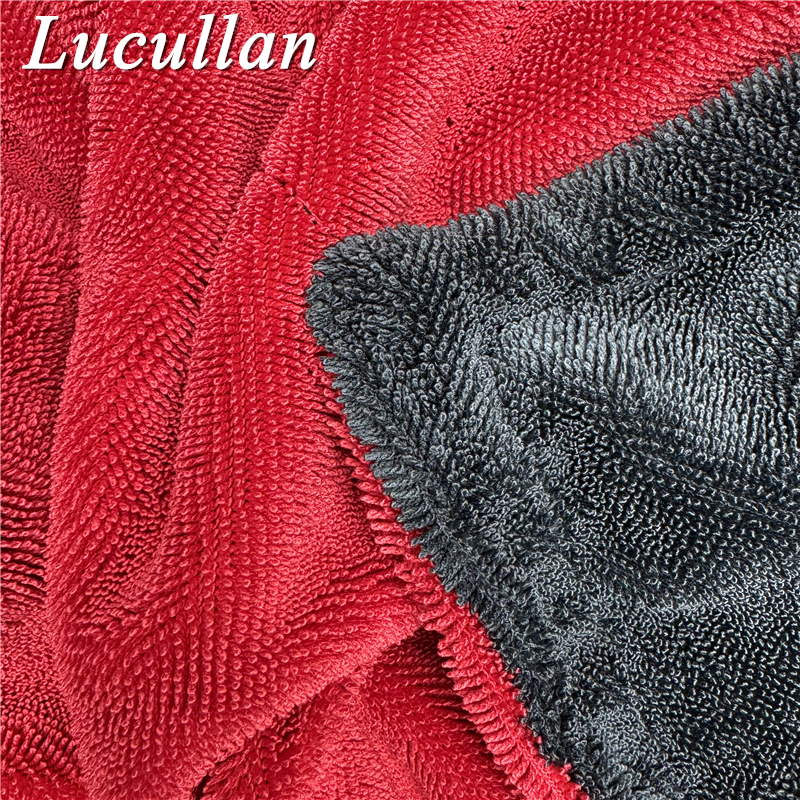Lucullan 60X90CM Red/Grey Double-Twist Pile Car Microfiber Drying Towel 1300GSM Super Absorbent Premium Detailing Cloth