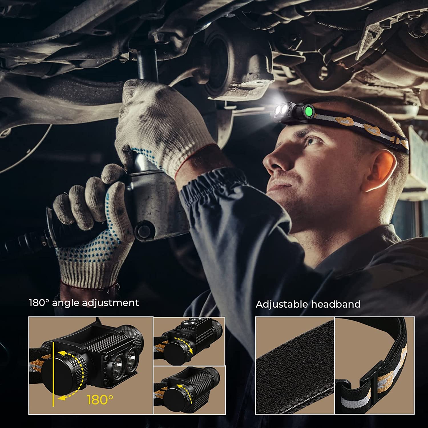 H25LR LED Rechargeable Headlamp Powerful Head Flashlight with 90 High CRI Bright White Light and 660nm Deep Red Torch