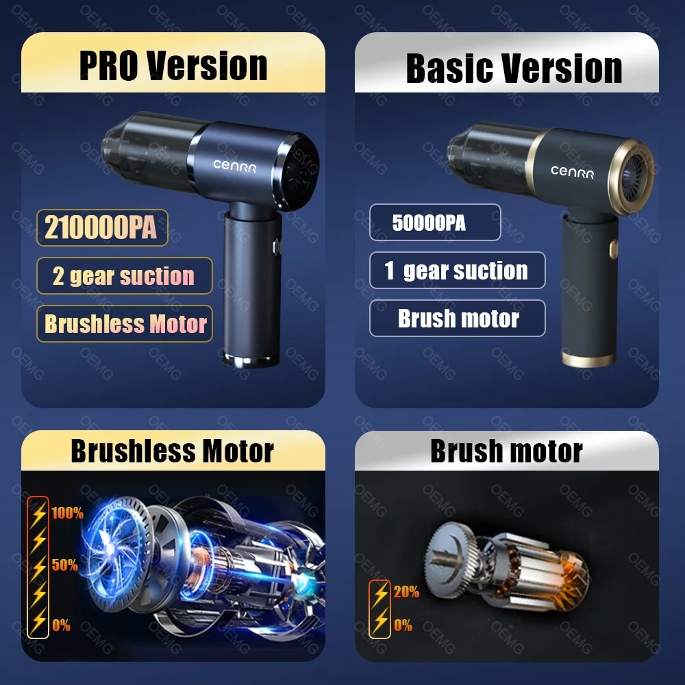 CENRR 210000PA Car Vacuum Cleaner Mini Powerful Handheld Wireless Cleaner Home Appliance for Blower Portable Vacuum Cleaner