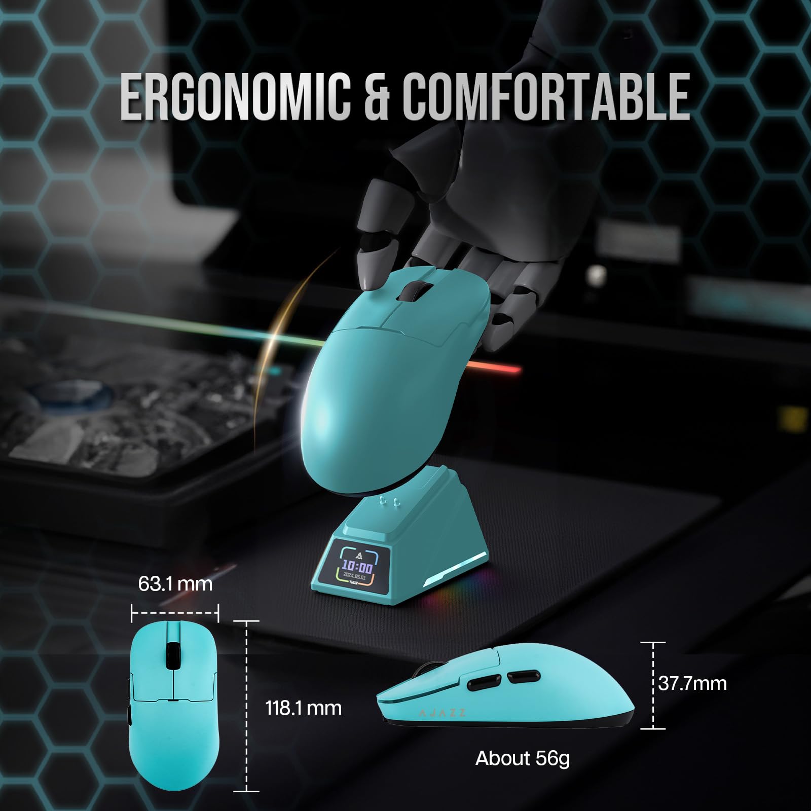 AJAZZ AJ159 APEX Wireless Mouse PAW3950 Sensor 2.4G/BT/USB-C Optical Gaming Mouse 56g Lightweight With 8K Magnetic Charging Base
