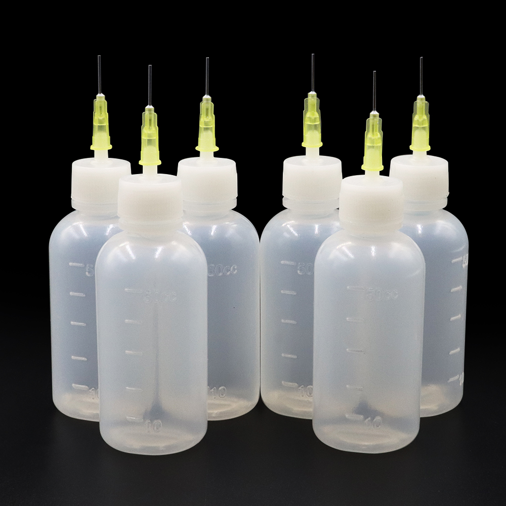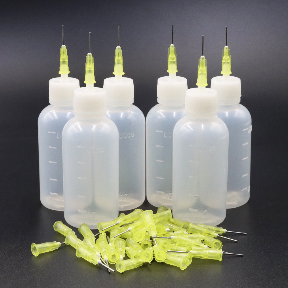 6pcs 50ml Transparent Glue Bottle Squeezable Applicator Plastic Liquid Bottle with 50pcs Dispensing Needle Suitable for Glue DIY