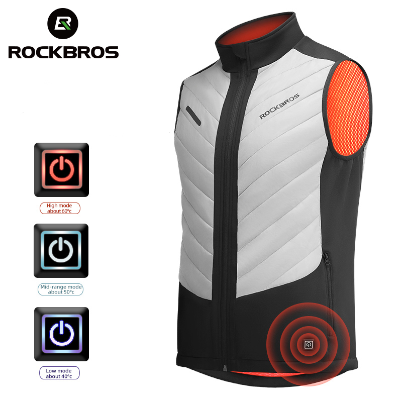 ROCKBROS Heated Vest USB Heated Jacket Thermal Clothing Hunting Cycling USB Infrared Heating Vest Washable Men Winter Warm