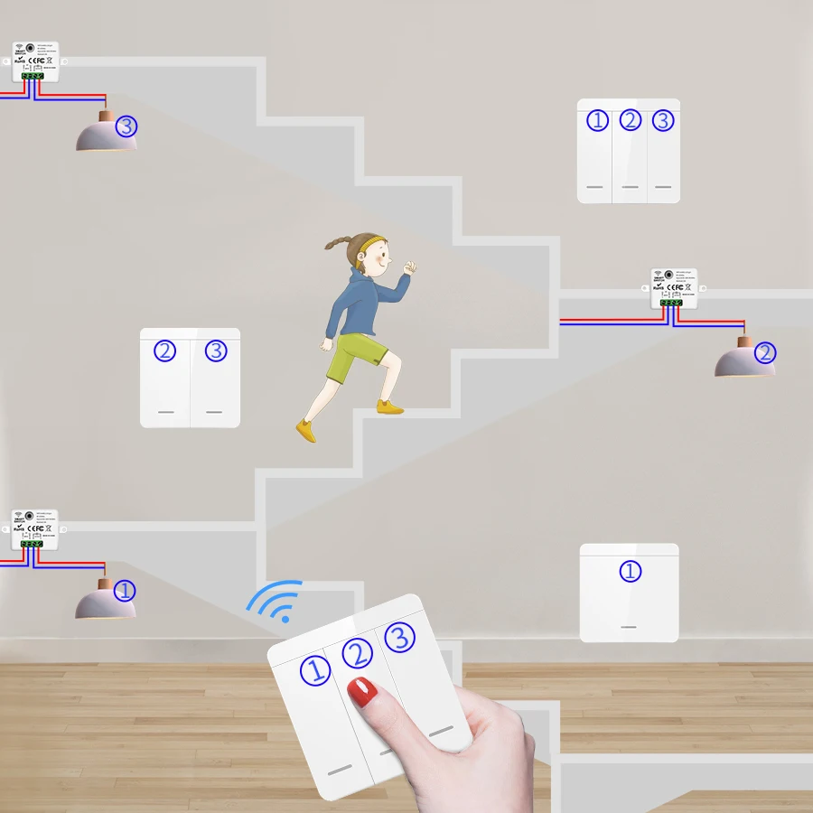 Wireless Light Wall Switch Relay Receiver RF 433Mhz 1/2/3Gang Panel Switch Remote Control Interruptor for LED Lamp 10A 110V 220V