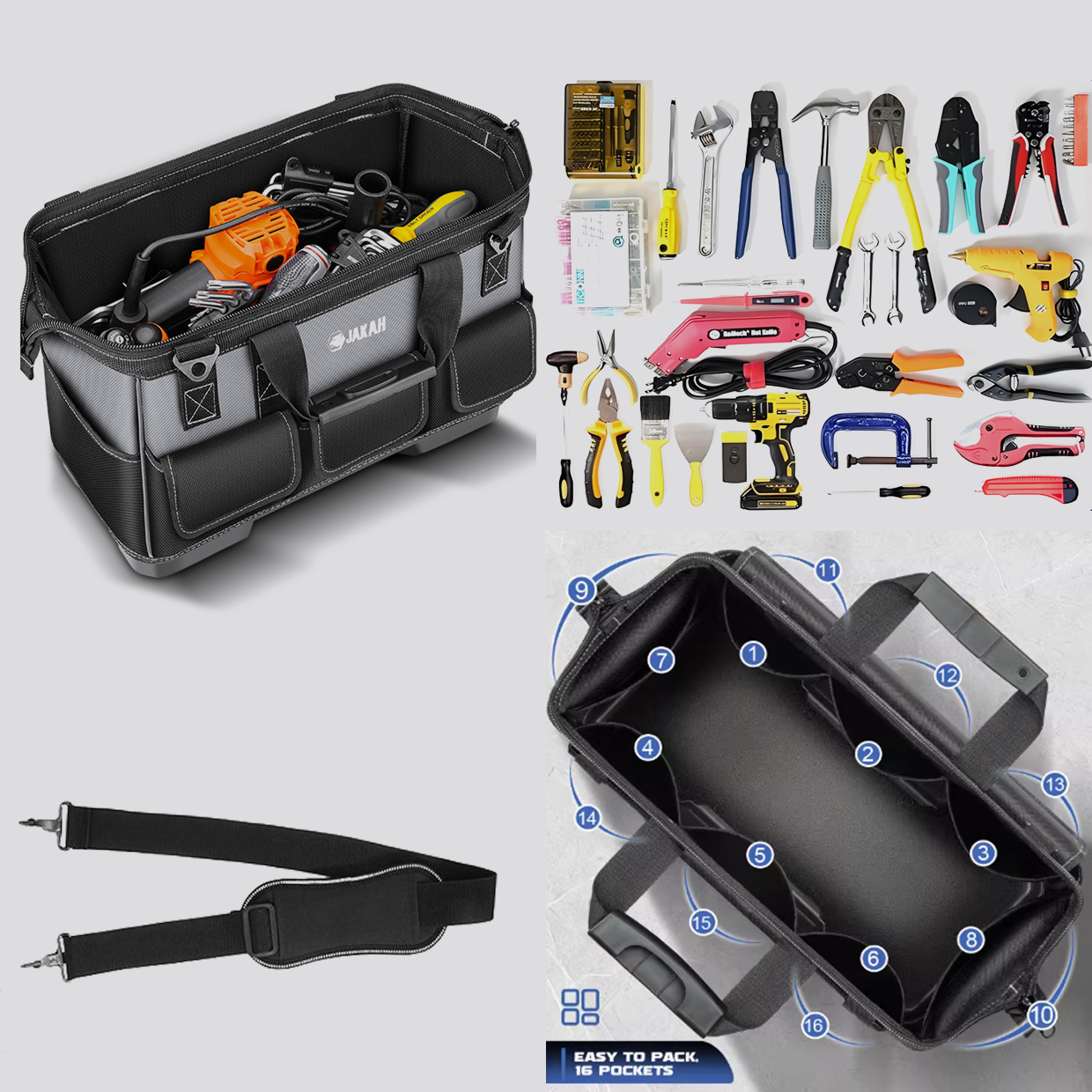 JAKAH 16 to 23 Inch Multi-Function Electrician's Tool Bag Durable Large Capacity Portable & Organized Heavy Duty Electrical Bag