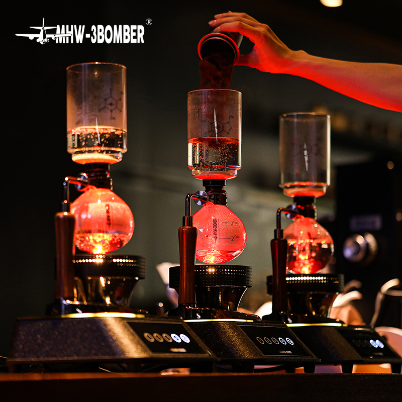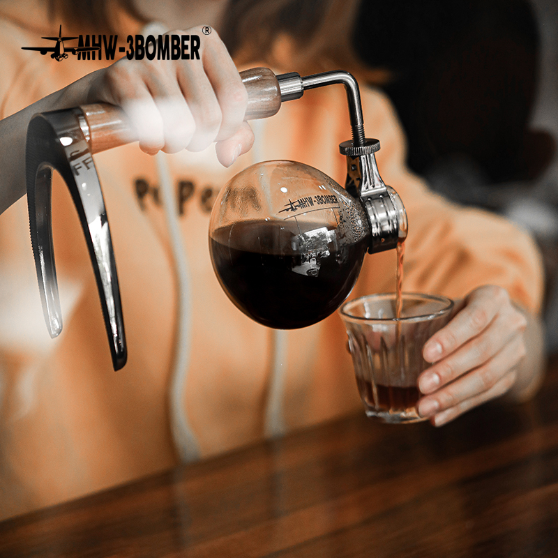 MHW-3BOMBER Syphon Coffee Maker Clear Glass Siphon Coffee Marchine with Vintage Stirrer Professional Home Barista Accessories