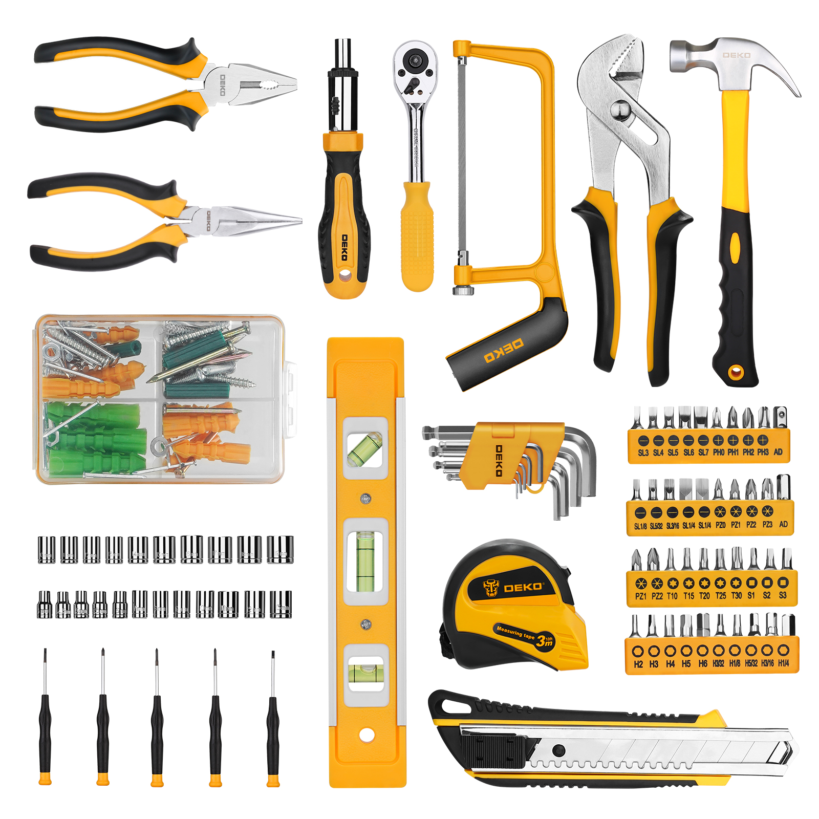 DEKO 228Pieces Socket Wrench Auto Repair Tool Combination Package Mixed Tool Set Hand Tool Kit with Plastic Toolbox Storage Case