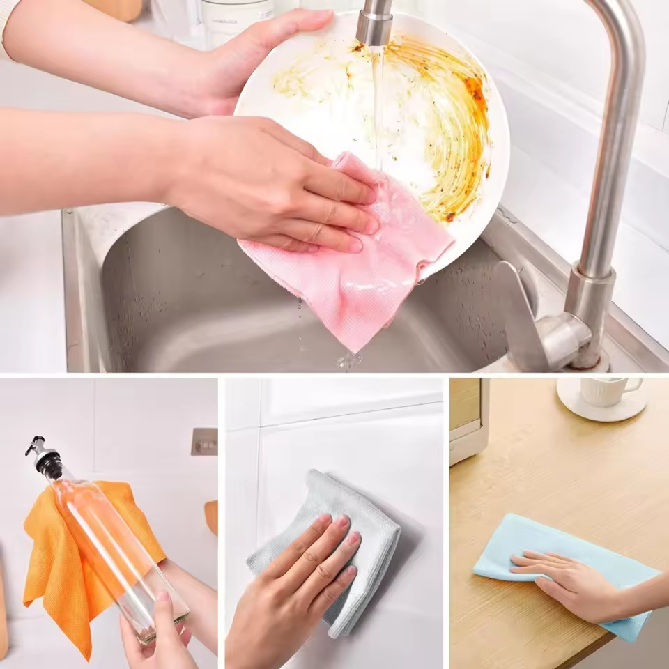 Reusable Cleaning Wipe Household Kitchen Cloth Microfiber Towel Rolls Dish Rags Wash Paper Towel Replacement 1 Roll of 20 Sheets