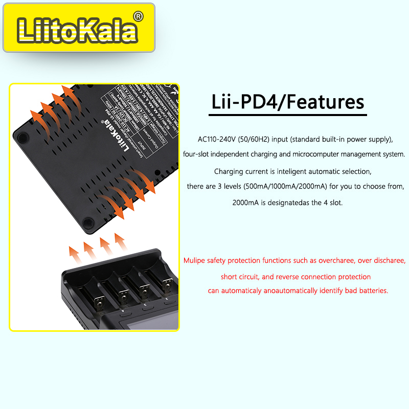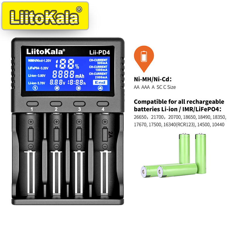 LiitoKala Lii-PD4/PD2 AC PD Charger LCD Fast Charging 4/2-Bay for 21700/18650/AA/AAA Multi-Protection Auto-Detect
