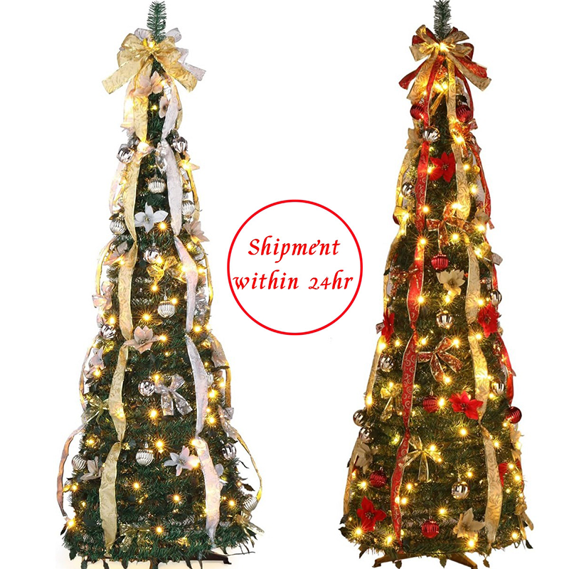 Retractable Christmas Tree 4ft-6ft Folding Christmas Tree plus Light Spiral Tree Christmas Decorative Tree