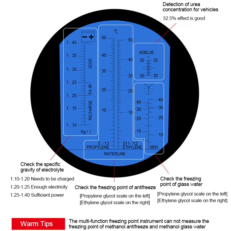 4 in 1 Automotive Antifreeze Refractometer Car Urea Fluid Tester Battery Freezing ATC Detector Handheld Electrolyte Hydrometer