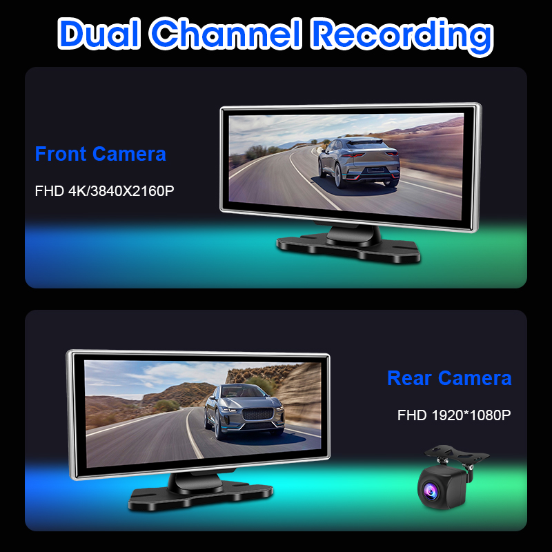 10/11.26 inch Dash Cam 4K Car DVR Wireless Carplay & Android Auto GPS Navigation Video Recorder Dashboard Dual Lens Wifi FM AUX