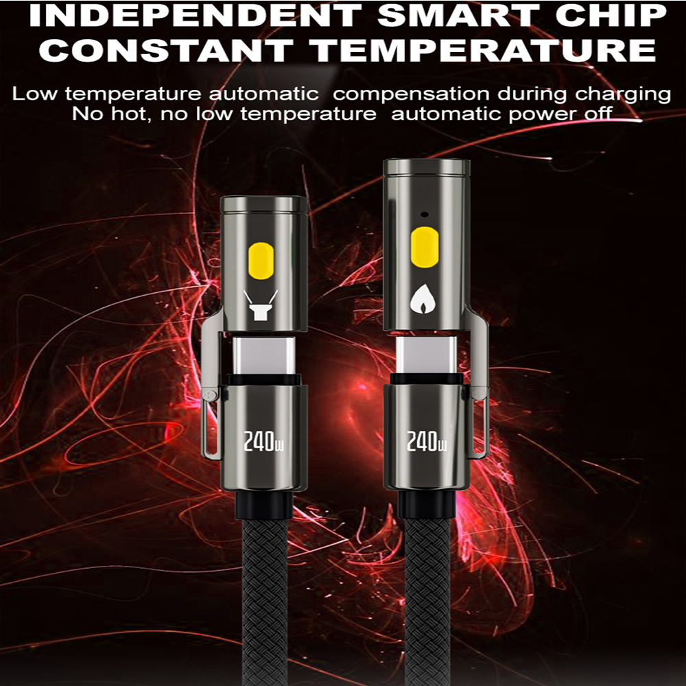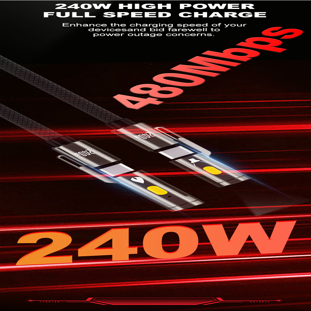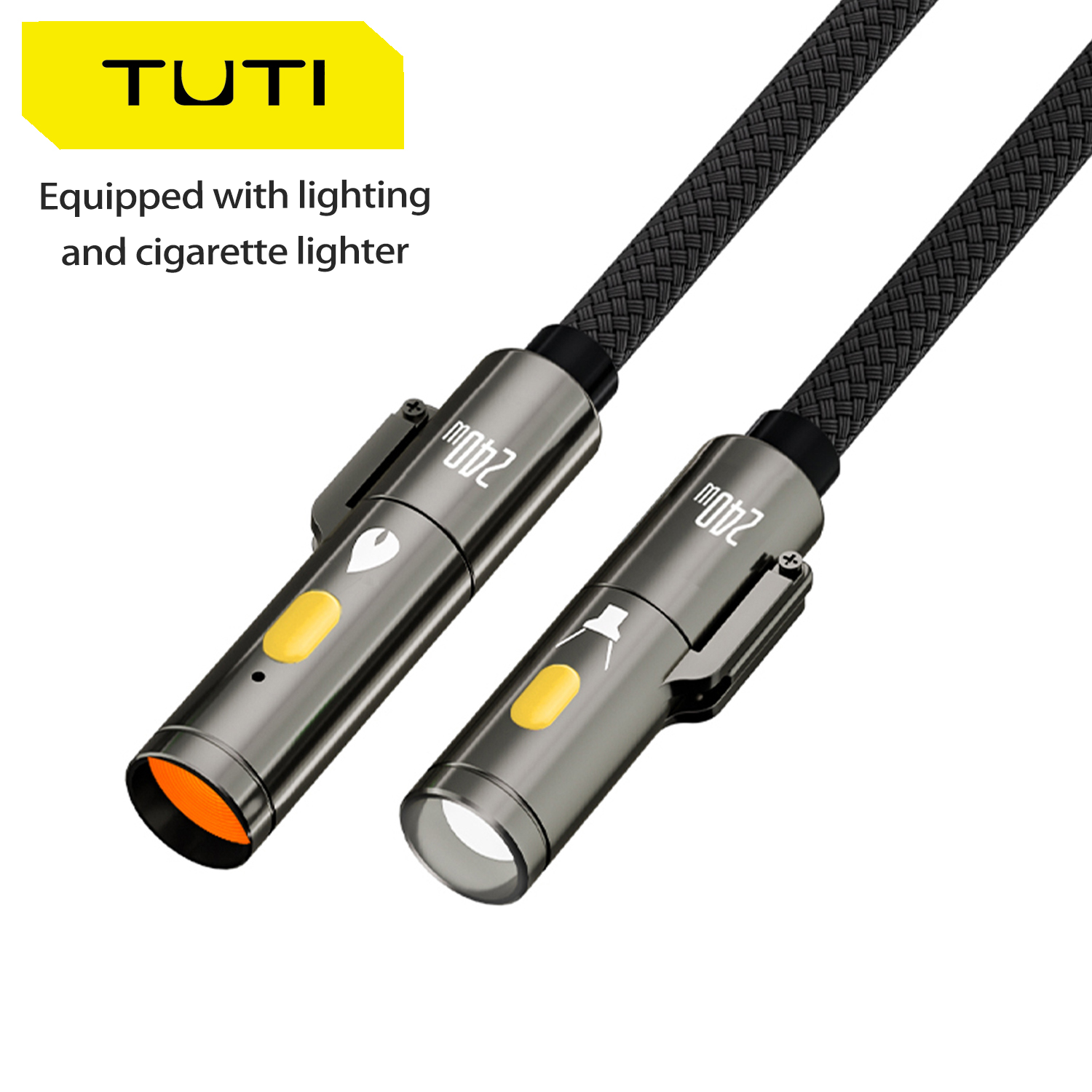 TUTI 240W 480Mbps USB-C Charging Cable with LED Flashlight & Igniter for MacBook,iPhone, Android, Heavy-Duty Nylon Braided Cable