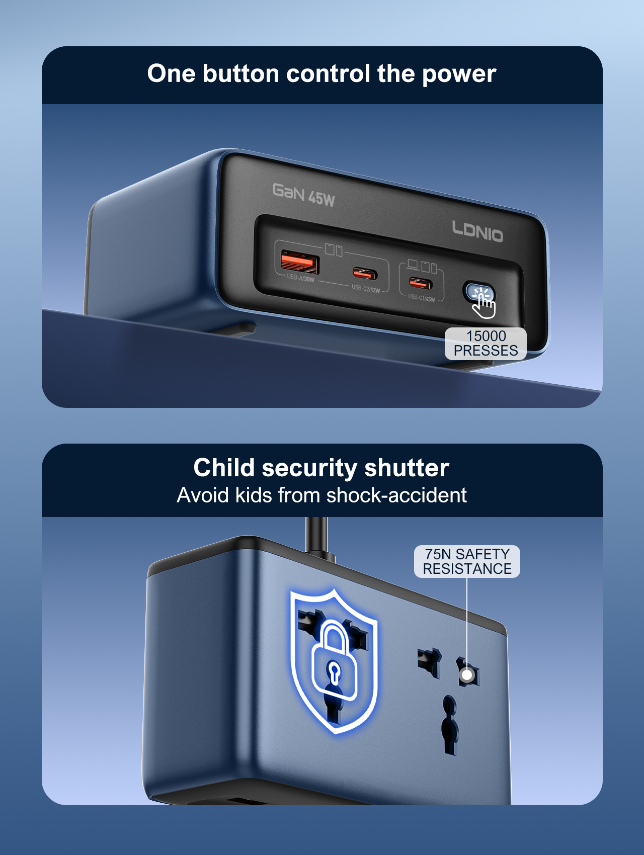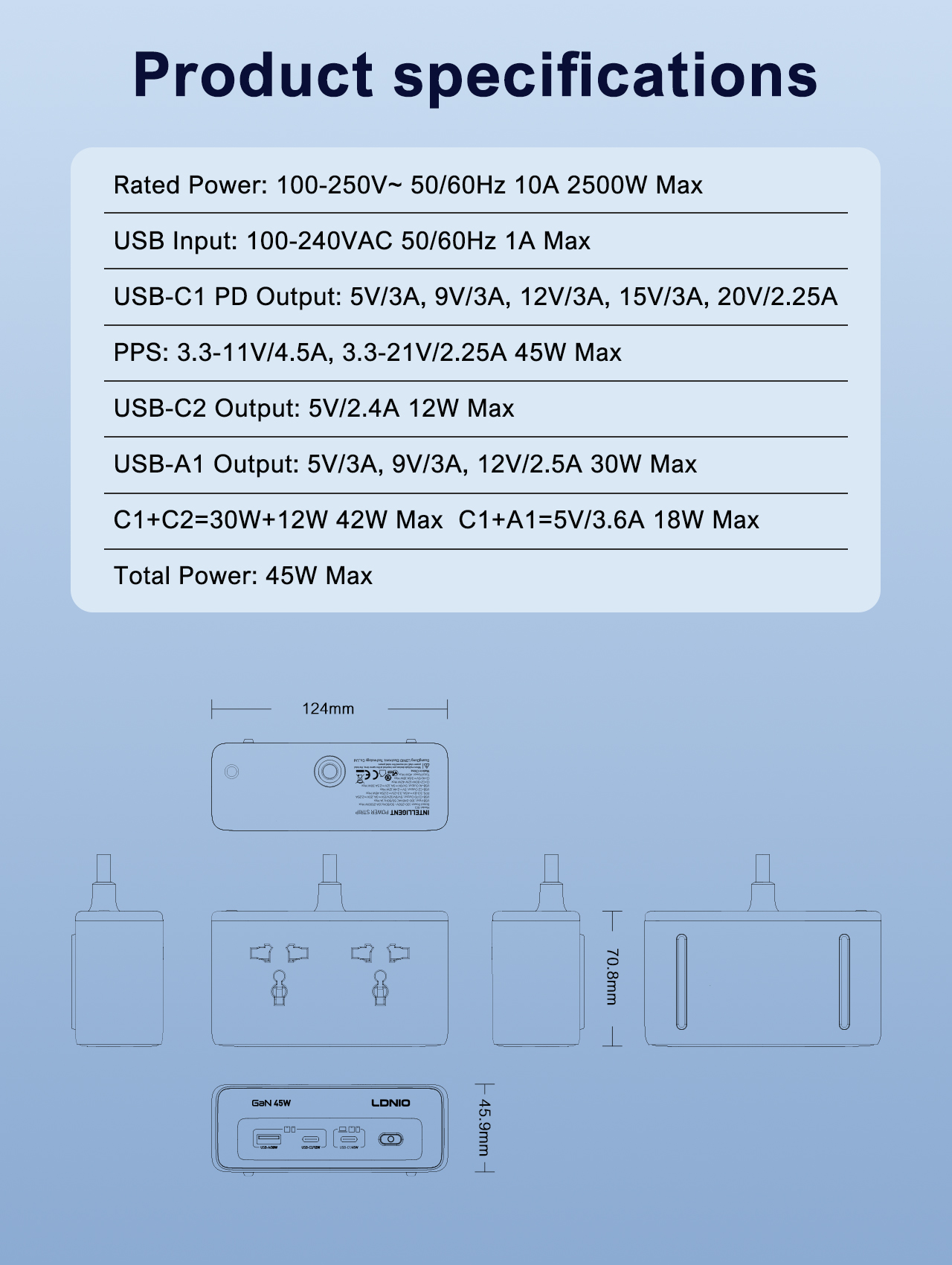 LDNIO Fast Charger Cube Power Strip 2M Electric Extension Power Cord 45W Type C Charging Station Us UK Eu Kr Usb Plug Adapter