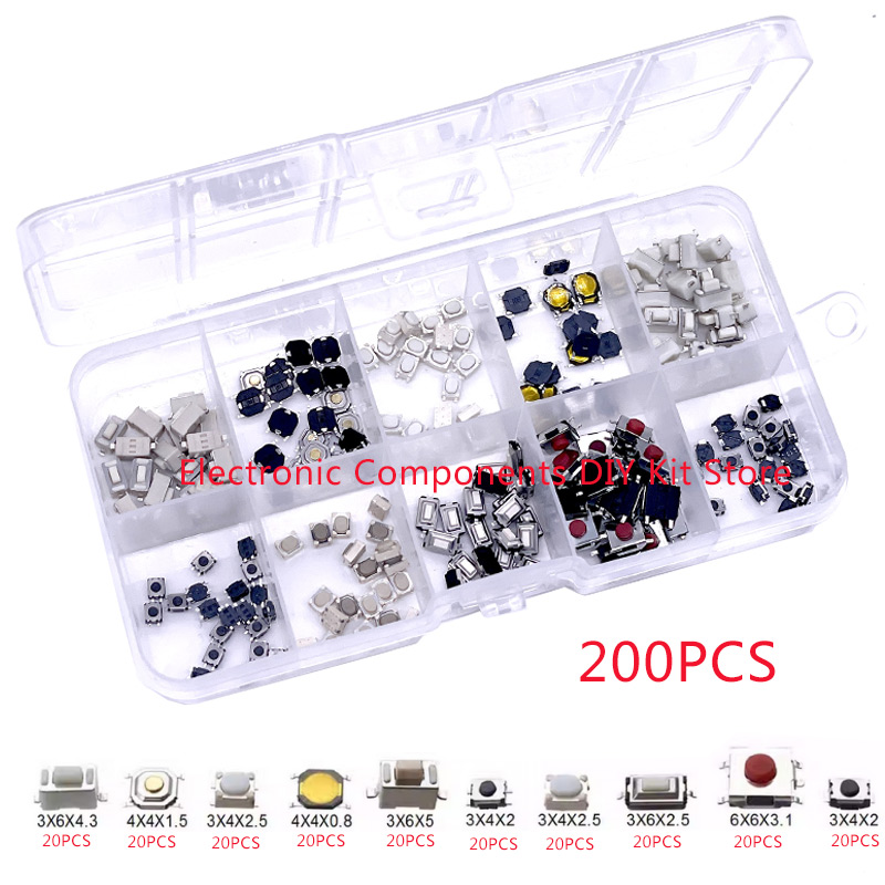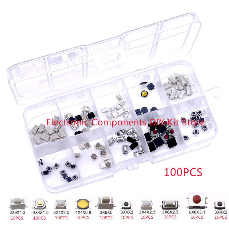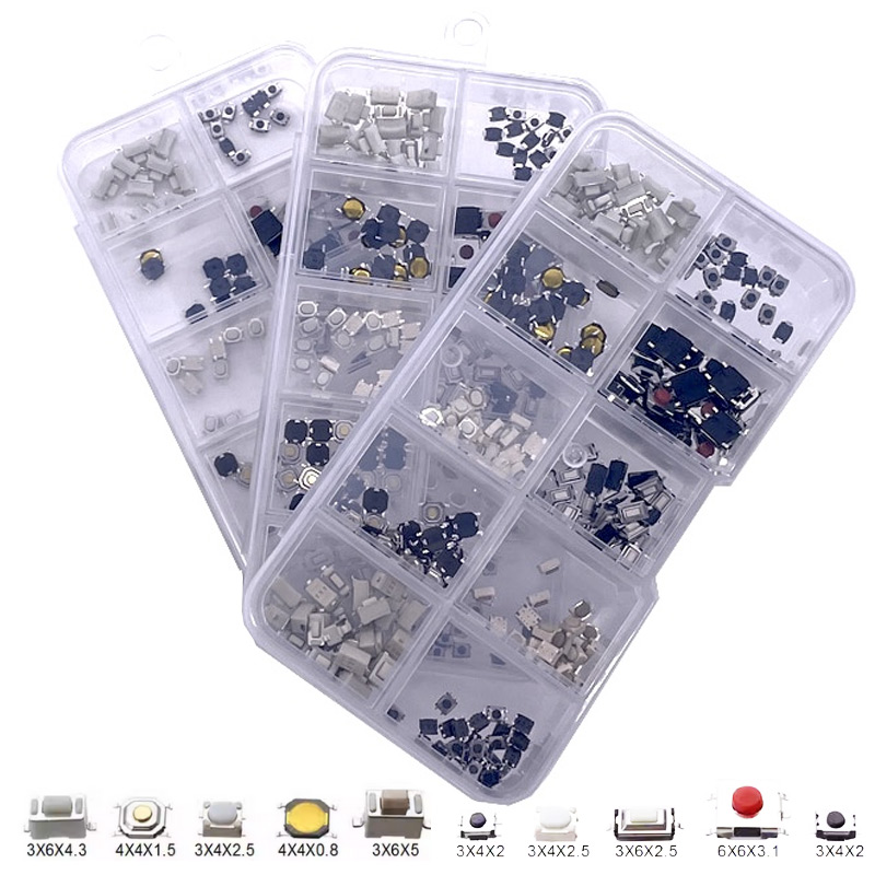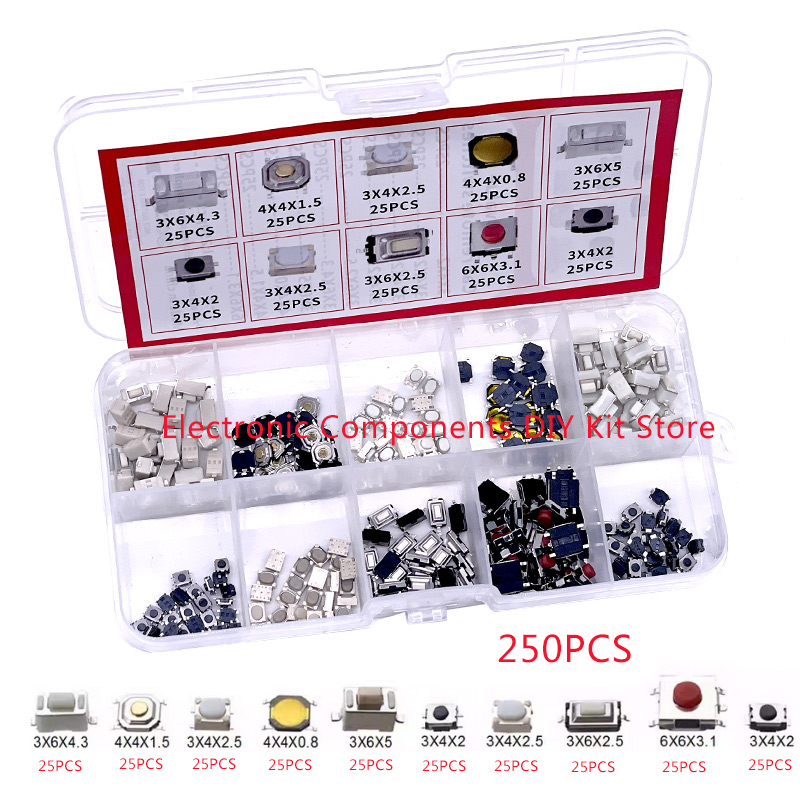 100/200/250pcs 10 Types Durable Car Remote Control Tablet Actile Push Button Switch Car Keys Button Touch Microswitch with Box
