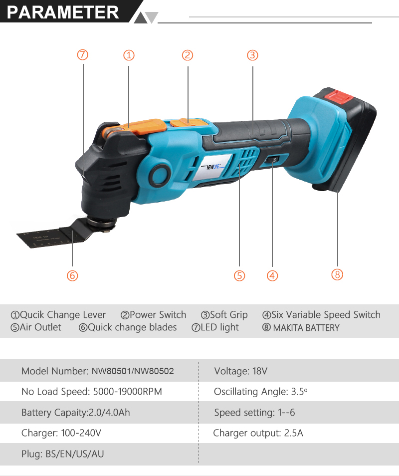 Newone Cordless Multifunction tool Quickrelease Oscillating Tool Anti-Vibration Compatible for LXT 18V Renovator Trimmer