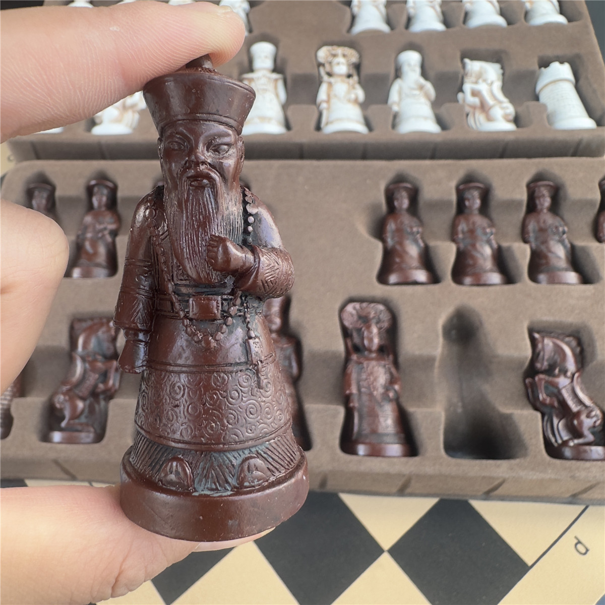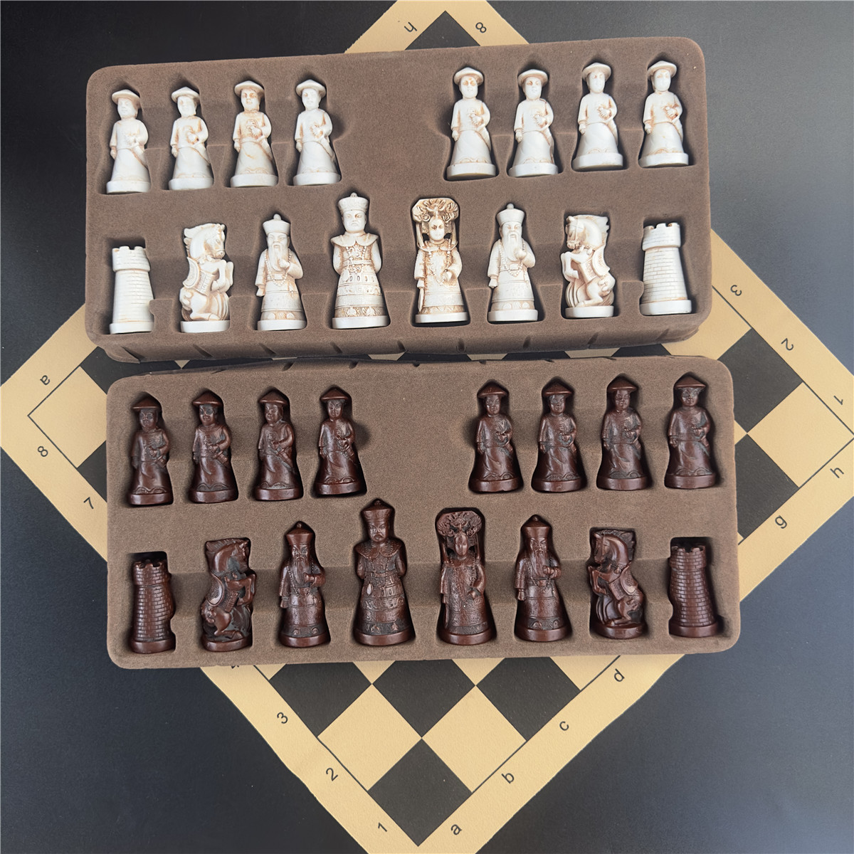 Antique Chess Large 3D Character Modeling Qing Soldier Resin Chess Pieces Leather Chessboard Entertainment Box40*19cm/15.7*7.5in