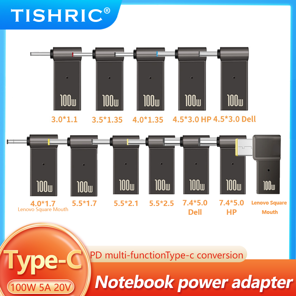TISHRIC Laptop Power Charger Supply Connector Adapter PD 100W 5A USB Type-C Female to DC Male For HP/Lenovo/DELL