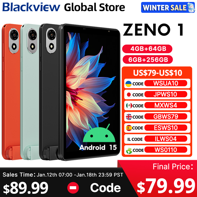New Blackview ZENO 1 Tablet 8-inch Display 4G LTE Android 15 Widevine L1 Octa-core 64GB 256GB 6000mAh Doke AI Small size Pad PC