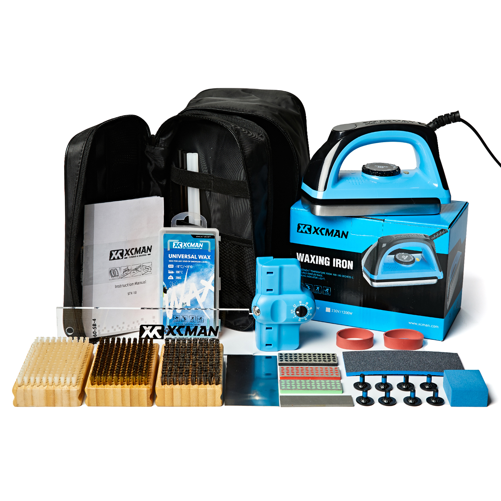 XCMAN Complete Ski Snowboard Tuning Waxing Combo Kit with Waxing Iron,Ski Wax,Side Base Edge Tuner,Ptex Base Repair,Gummy Stone,