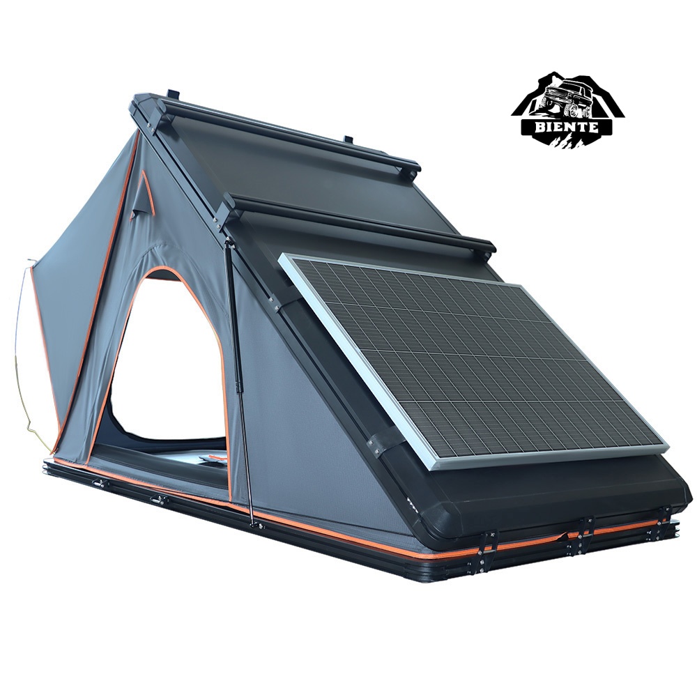Camping Triangle Aluminum Clamshell Solar Car Tent Hard Shell Roof Top Tent Solar Panel