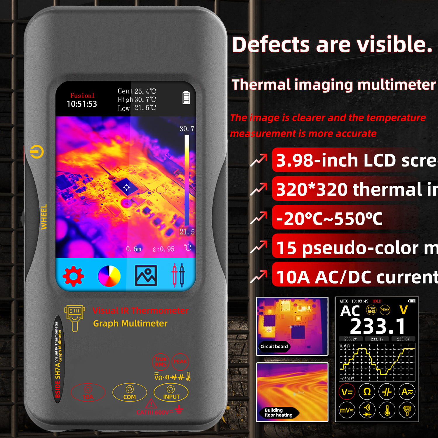 BSIDE SH7A Thermal Imager Multimeter 320*320 resolution 3.98 inch touchable 15 color palettes circuit board repair