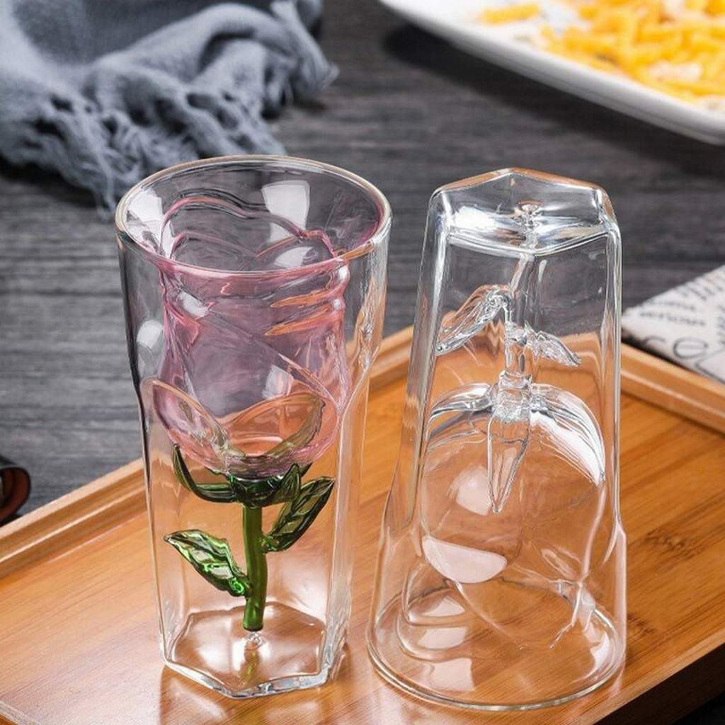 2pcs Rose Shape Double Wall Copo Gafas Vetro Bilayer Wine Glass Cocktail Flip Liquor Cup Vaso Household Bar Lover Gift Xmas Gift