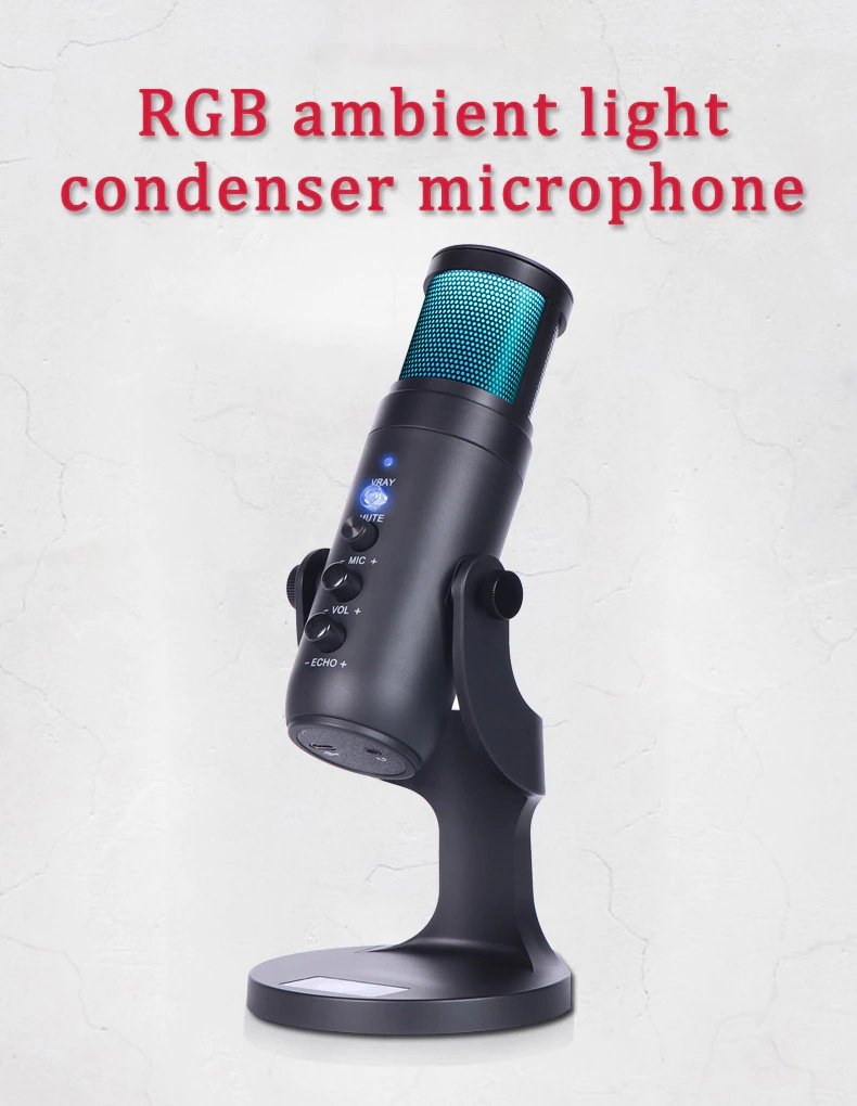 RGB Condenser Microphone for iPhone Android laptop Computers Professional USB Mic with Earphone jack for Gaming Streaming Video
