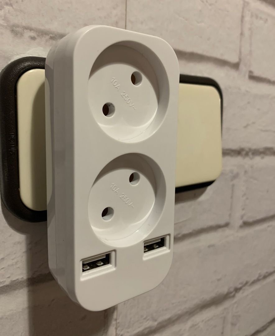 Tee on 2 USB ports + 2 sockets