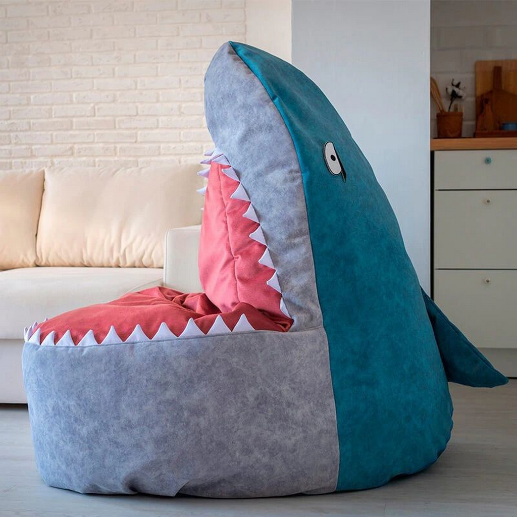 Bean bag boomts shark with three snap kits eye Velcro of durable and delicate velour baby bean bag chair pear for room armchair for leisure exotic acessories Ottoman pouf furniture for home Rattan