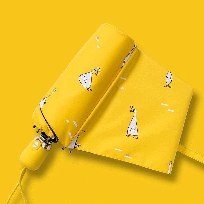 New Cartoon Duck Design Automatic Umbrella Yellow Windproof UV Protect Umbrella For Women Girl Sunny And Rainy Folding Umbrellas