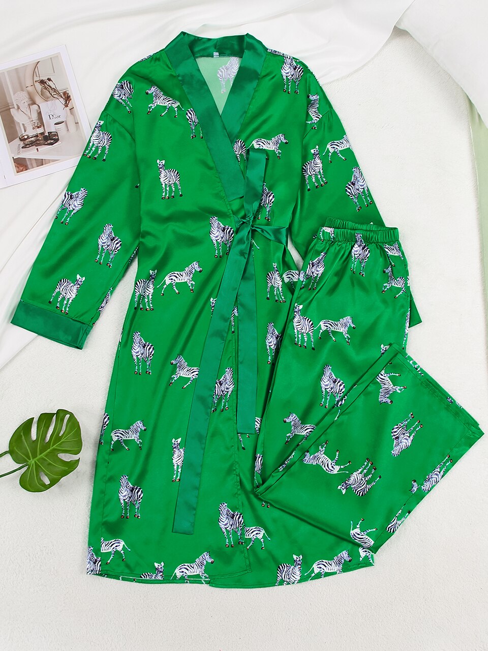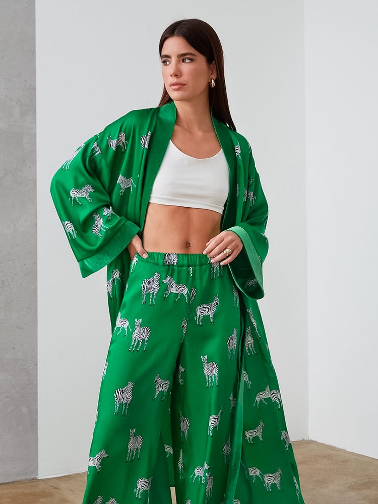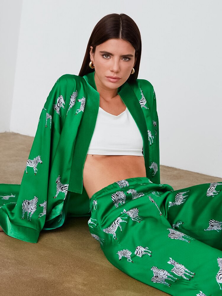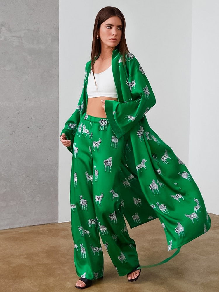 Animal Print Sleepwear Women Pajama Sets Womens Outfits Zebra Pattren Trouser Suits Satin Women's Nightgown Flare Sleeve Nightie