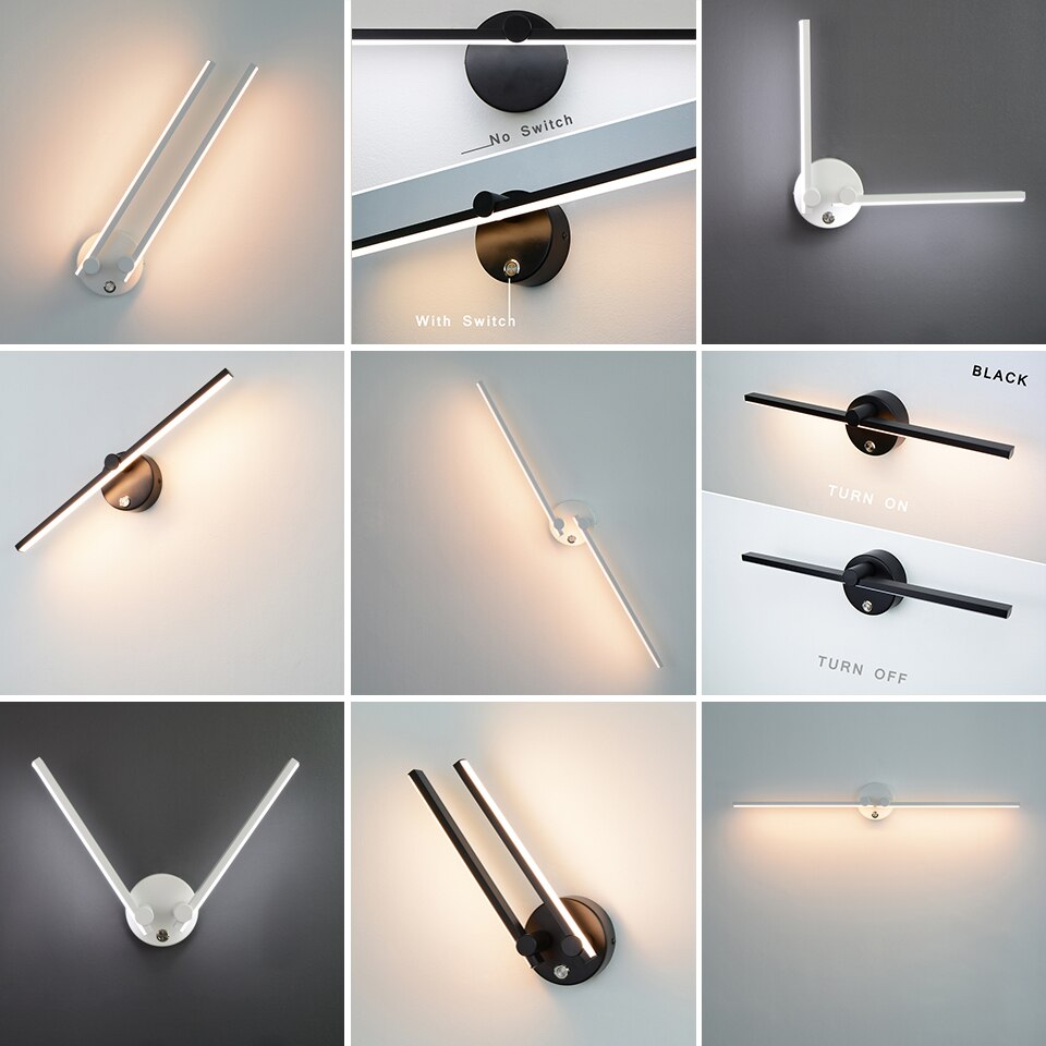 Nordic LED Indoor Wall Lamps 8W White/Black Wall Lights For Home Bedroom Bedside Mirror Front Adjustable Wall Sconce AC110V/220V