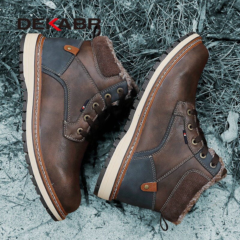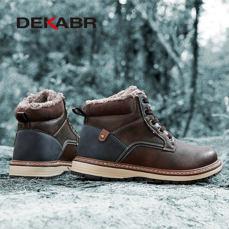 DEKABR Winter Genuine Leather Men's Boots Thick Fur Warm Ankle Boots Working Men Footwear Waterproof Snow Boots Plus Size 40~47