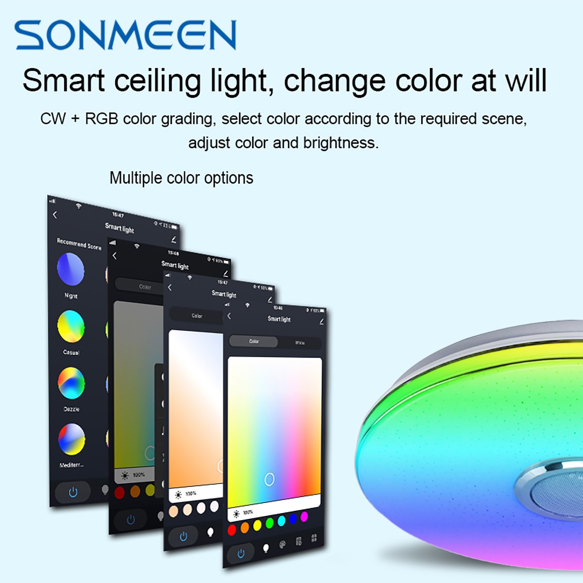 SONMEEN 36 WiFi Modern Smart LED Light Ceiling Lamp RGB+Dimmable APP Bluetooth Music Home Light With Remote Control