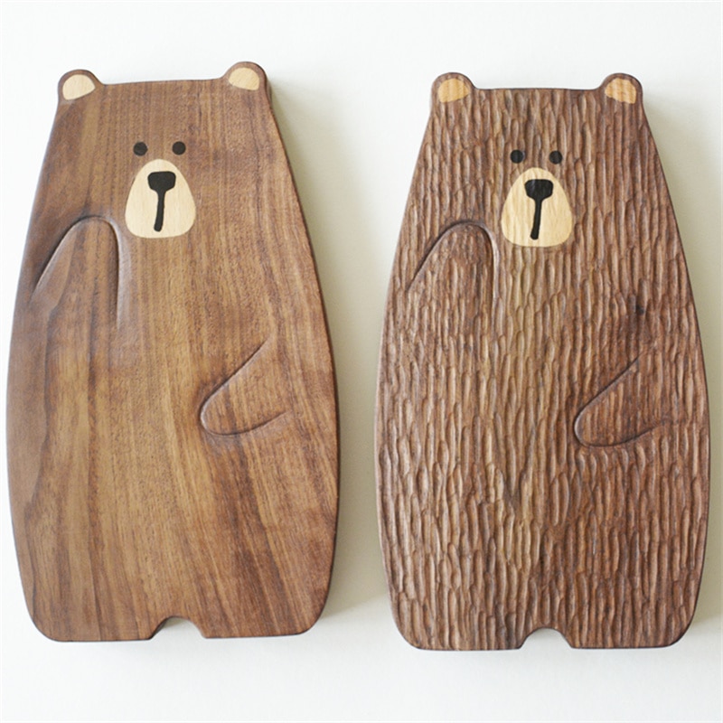 Cute Bear Wood Board Bread Plate Block Bear Shape Tray Black Walnut Cutting Board Table Decor Kitchen Accessories Coaster