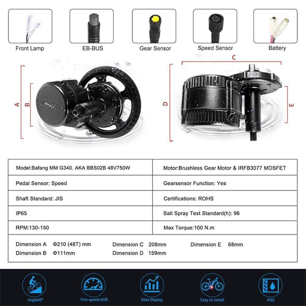 Bafang 750W Motor BBS02B BBS02 Ebike Conversion Kit Electric Bicycle Mid Drive Engine 48V 52V 20Ah 17.5Ah Hailong Battery Kit