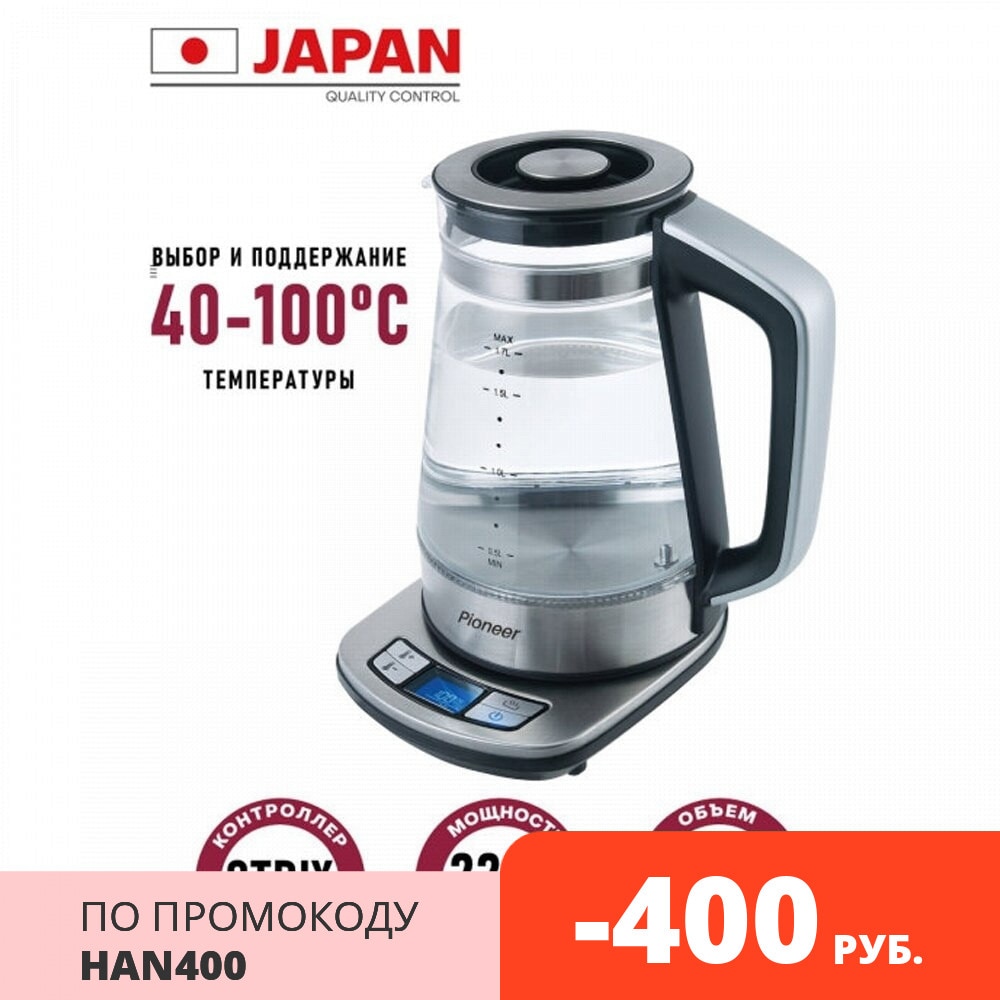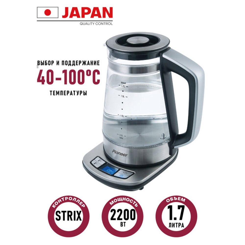Electric kettle pioneer ke816g Appliances for kitchen Kettles boiler for water samovar resistant glass with electric control and LCD-display controller 1,7 L, 2200 W