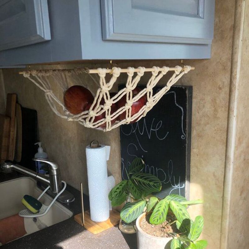 Kitchen Accessories Vegetable Fruit Hammock Convenience Under Cabinet Hanging Fruit Basket Hanging Storage Mesh Bag For Kitchen