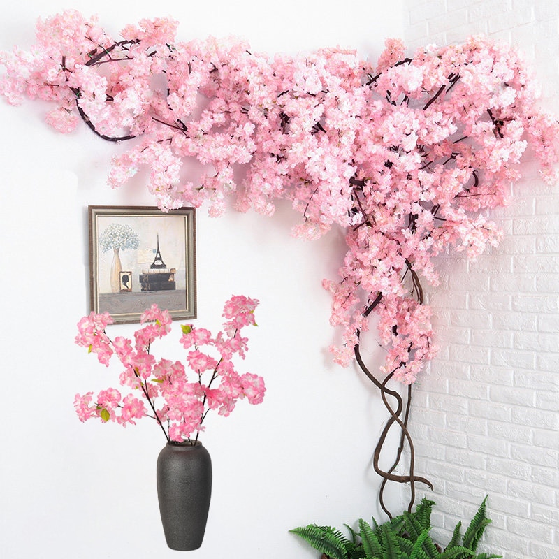 Artificial cherry tree Pink Sakura Branch silk 120cm diy Artificial Flowers Floral wall Wedding decoration Home outdoor decor