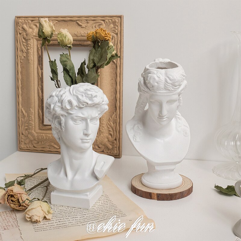 W&G Nordic Vase Home Decor Vase Creative Human Head Portrait Flower Vases Room Decoration Resin David Flower Vase Room Decor