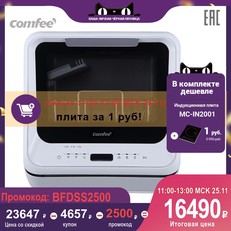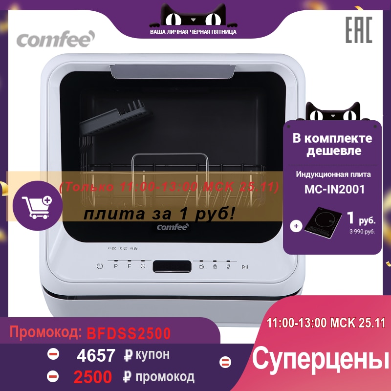 Compact dishwasher Comfee CDWC420W, 2 sets, 6 programs home and kitchen Major appliance for washing tableware Appliances household