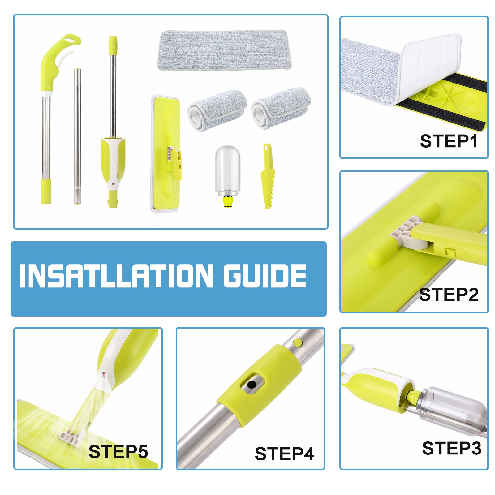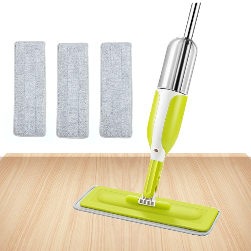 Squeeze Mop With Sprayer Hand Free Cleaning Tool for Kitchen Home Floor Flat Supplies Utensils 3 Microfiber Head Laminate Spiner