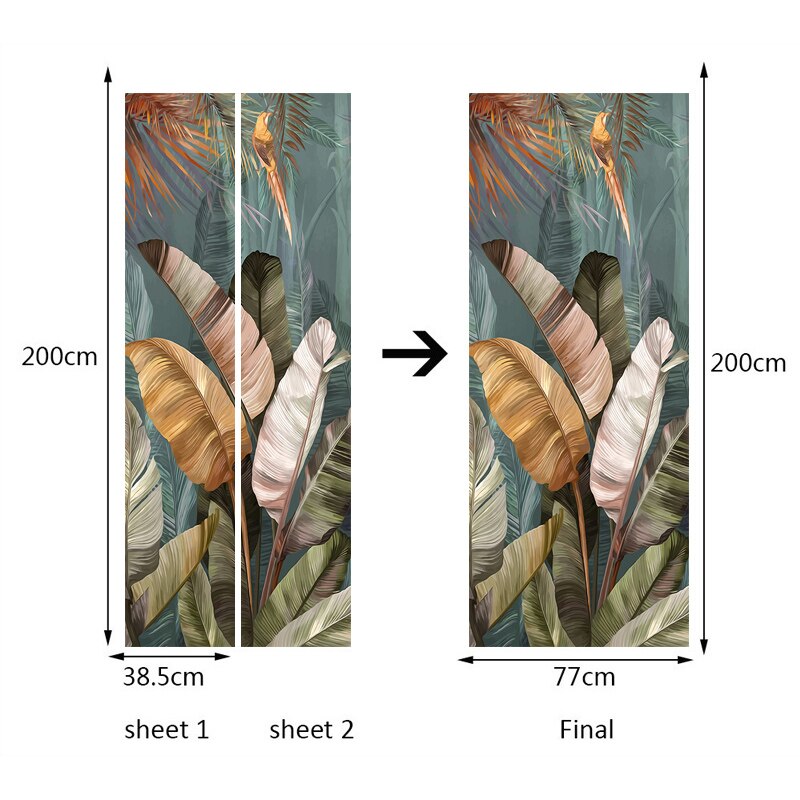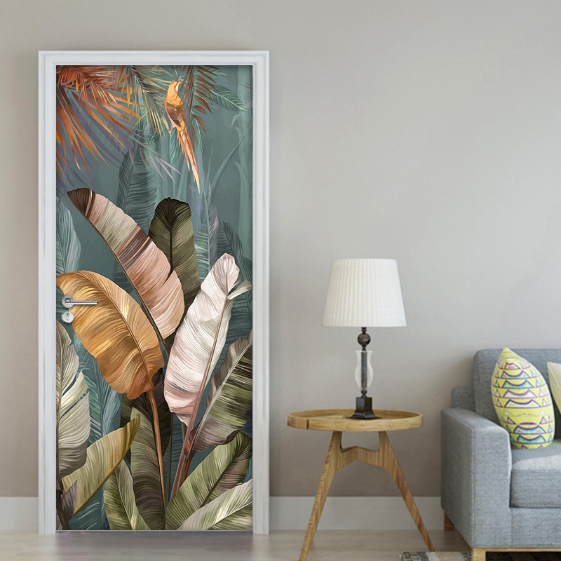 PVC Waterproof Self-adhesive Door Stickers Wall Decor Banana Leaf 3D Photo Mural Wallpaper Living Room Bedroom Decor Wall Decals